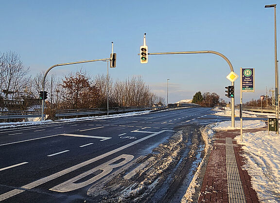 Die neue Signalanlage, ein Gewinn für zu Fuß Gehende und Radelnde.