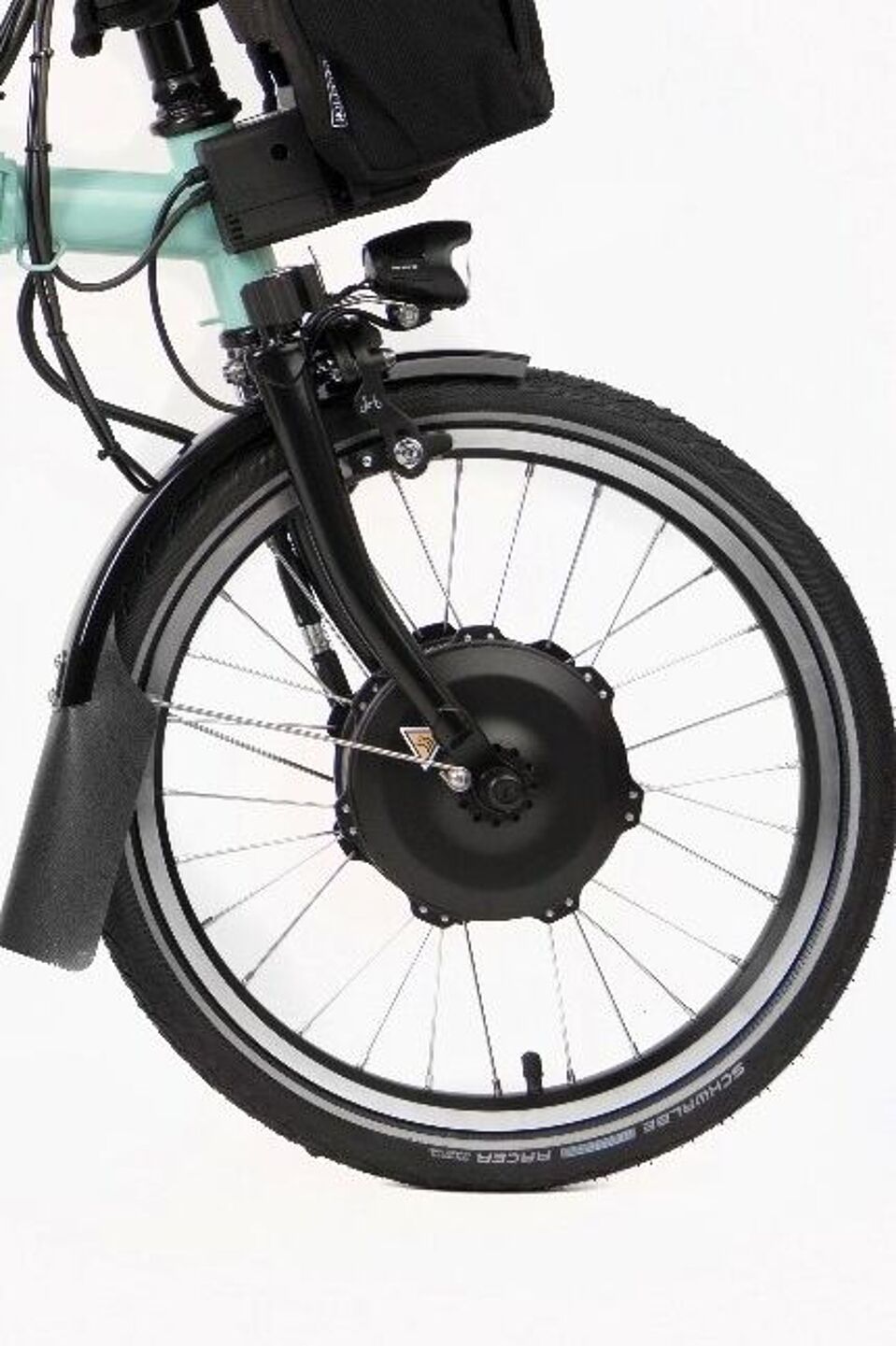Der Frontmotor sitzt in der Vorderradnabe. Daher müssen Gabeln und Rahmen den zusätzlichen Belastungen der Antriebs- und Bremskräfte standhalten. Da der Antrieb das Fahrrad zieht, kann das Vorderrad auf feuchtem und losem Untergrund oder in Kurven leichter durchdrehen und wegrutschen. Es gibt nur wenige Hersteller von hochwertigen Frontmotoren, die eine Anti-Schlupf-Regelung bieten.