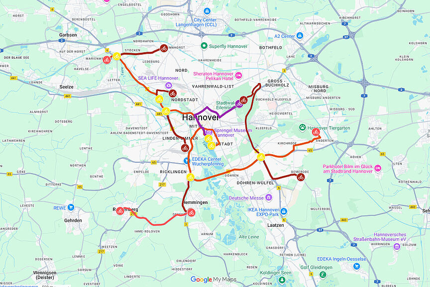 Als Highlight sehen wir die für Sonntag, 18. Mai geplante Sternfahrt zum Fahrradfest des ADFC Region Hannover am Maschsee an. Mit dem Fahrrad über den Westschnellweg pedalieren, die Möglichkeit gibt es nicht alle Tage. Diese Flächen sind im Alltag dem Kfz-Verkehr vorbehalten.